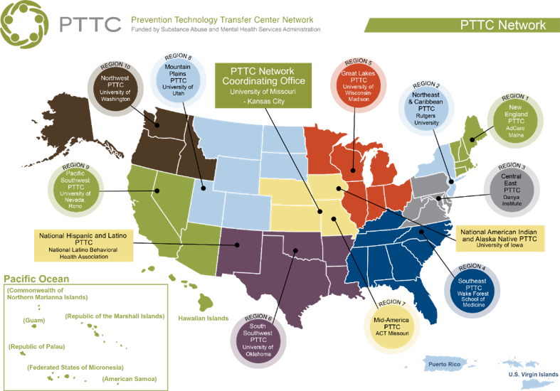 The Southeast Prevention Technology Transfer Center (Southeast PTTC) is funded by SAMHSA and housed at the Wake Forest School of Medicine in Winston-Salem, NC. The Southeast PTTC is a partner in providing training and technical assistance to the prevention workforce in the Southeast HHS Region 4 of the U.S. (AL, FL, GA, KY, MS, NC, SC, TN).